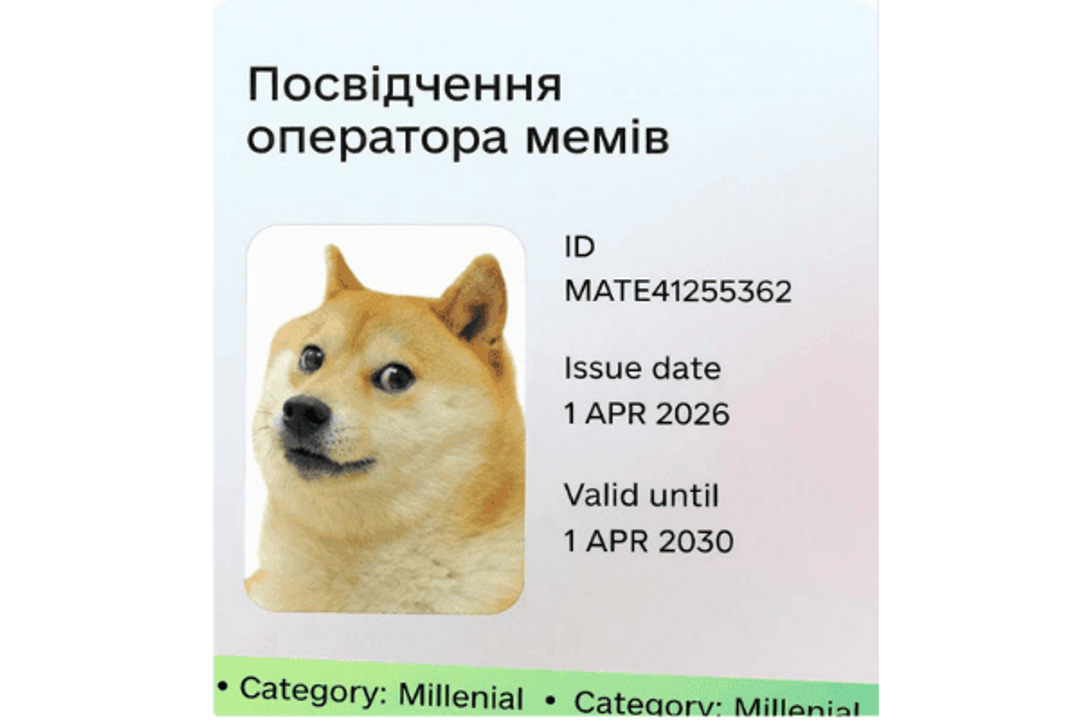 До Дня сміху Дія разом із EdTech-компанією Mate academy запустили мемну сертифікацію – тест за мемами, який визначає, до якого покоління ви належите: зумерів, міленіалів чи бумерів. Кожен учасник отримає документ – "Посвідчення оператора мемів", який точно стане в пригоді на випадок “серйозних” переговорів.