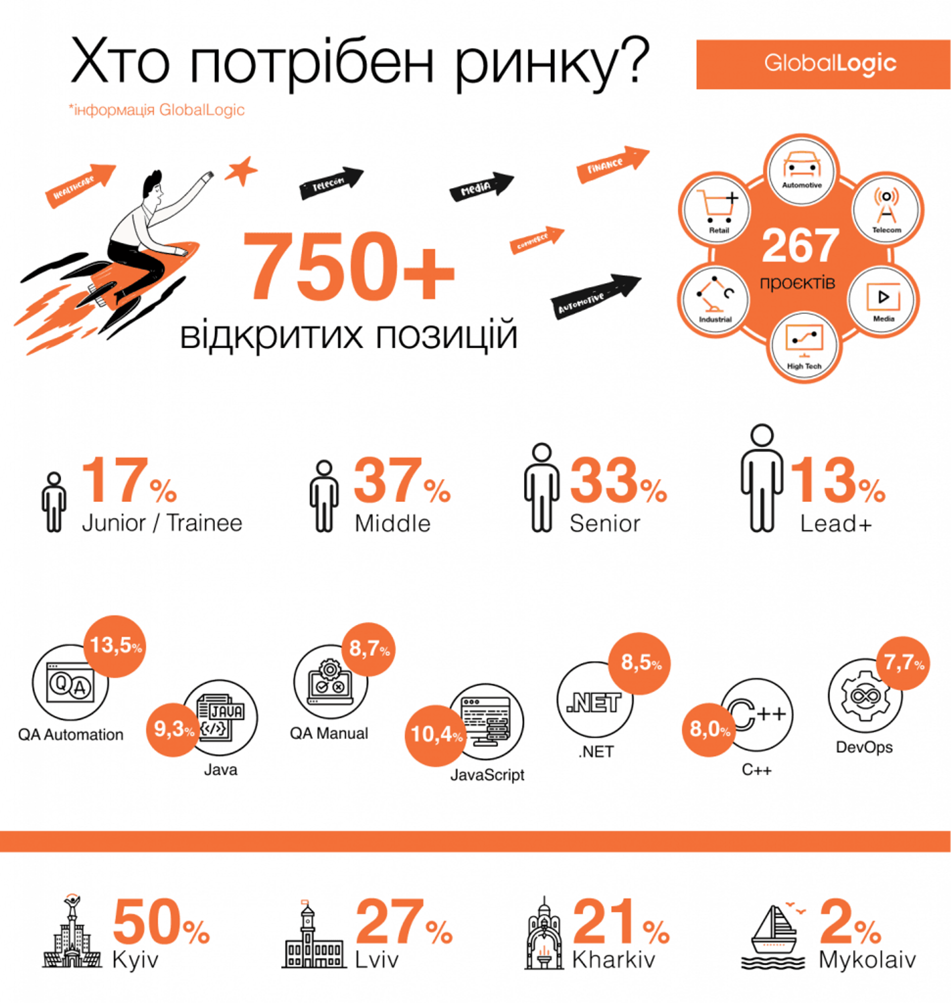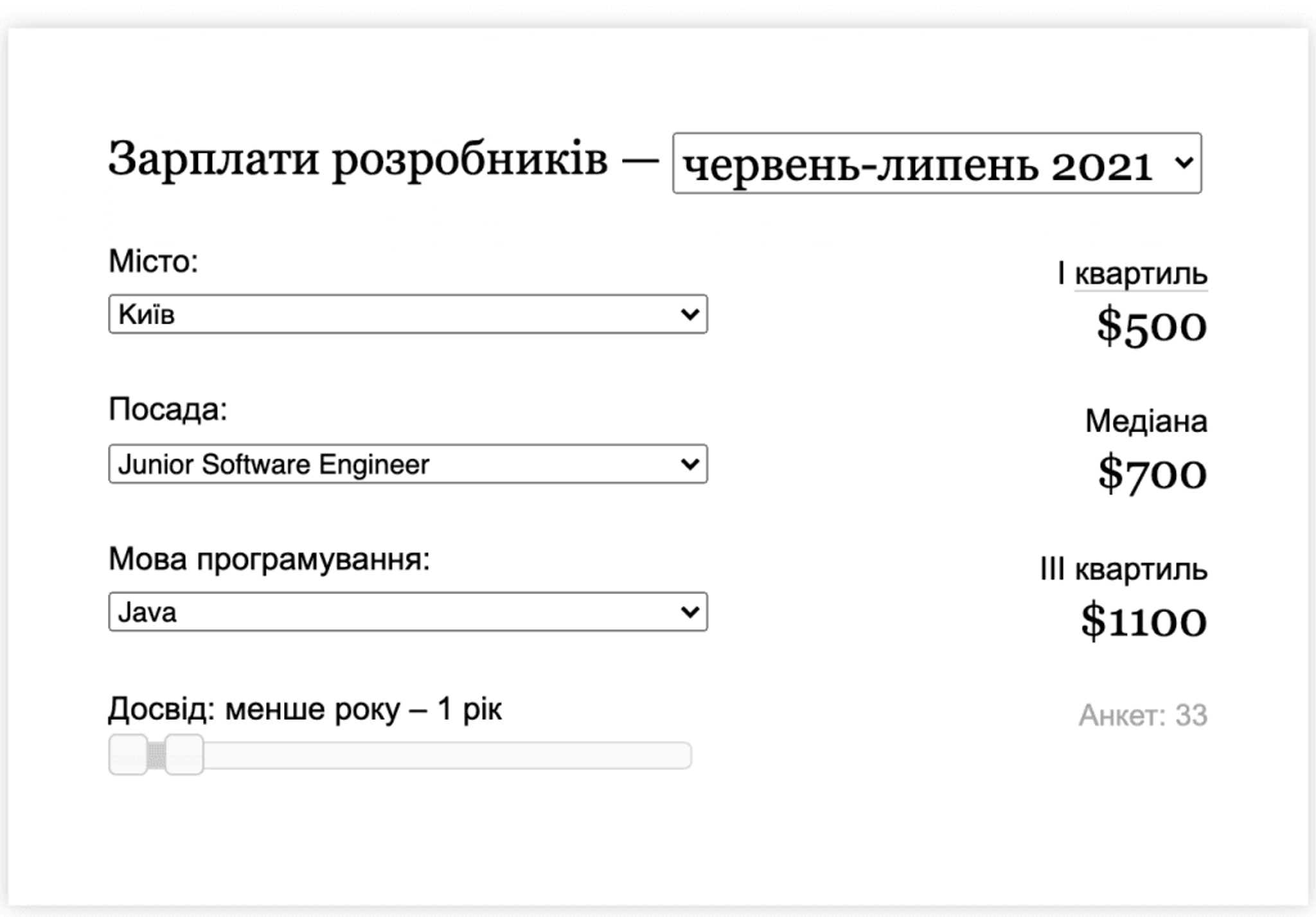 Java разработчиков ждут более привлекательные оферы, поскольку для Junior Java кандидатов зарплатные отметки могут стартовать от $500-800, в то время как для Junior Front End Developer – $400-600.