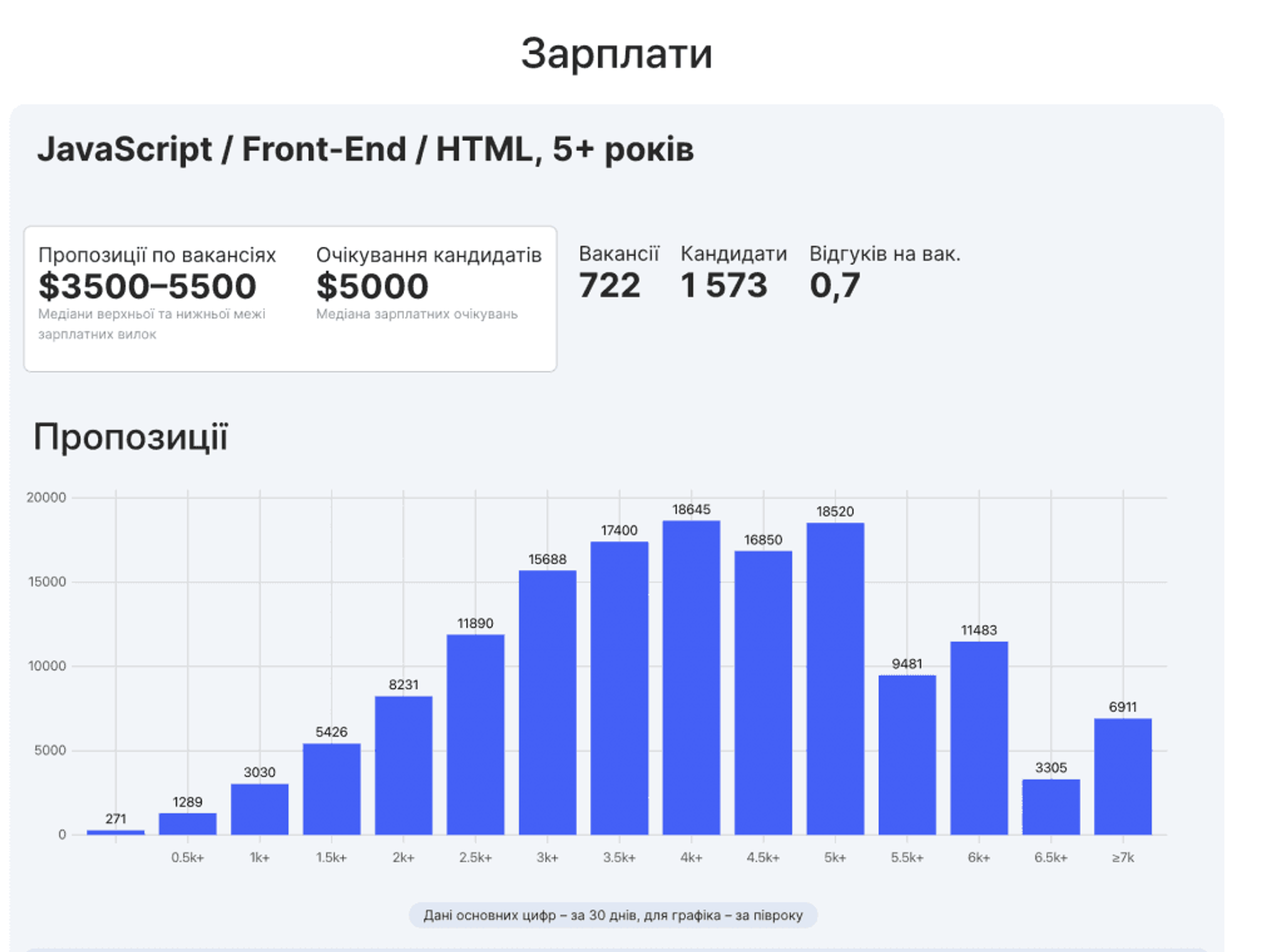 Спрос на IT-специалистов в Украине растет в течение последних пяти лет: количество вакансий увеличилось на 30%, а количество специалистов – на 18%.