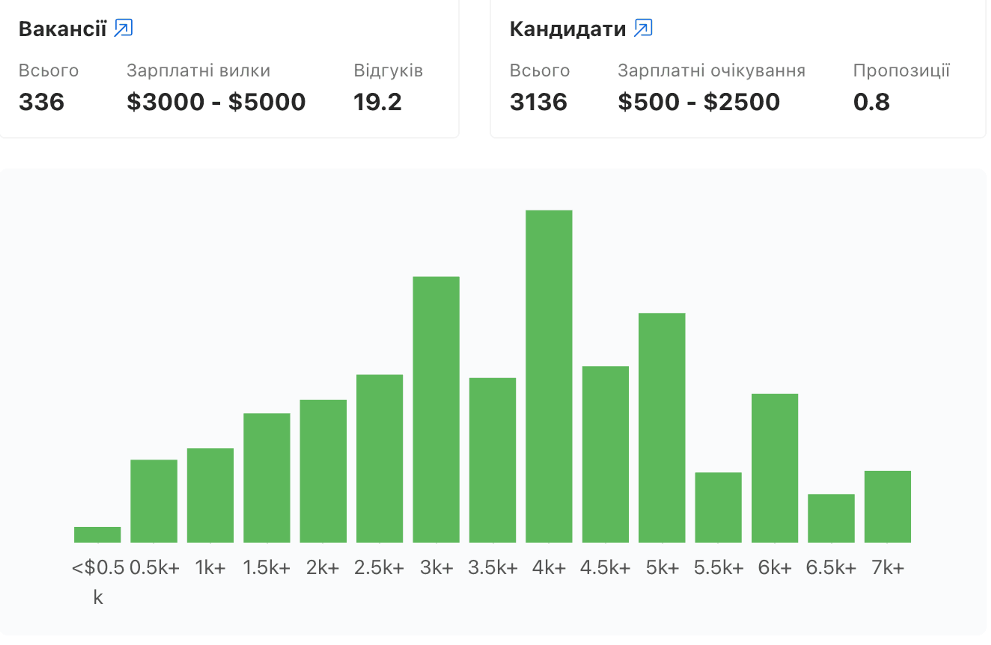 По состоянию на май 2023 года, согласно данным Djinni, работодатели предлагают следующие средние зарплаты Python-разработчикам в Украине:
